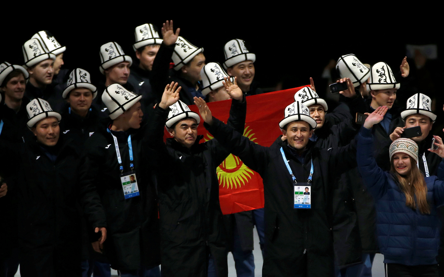 Atletas de Kirguizistán participan en la ceremonia de inauguración de los VIII Juegos Asiáticos de Invierno en Sapporo, Japón. 19 de febrero de 2017. [Foto: Xinhua]
