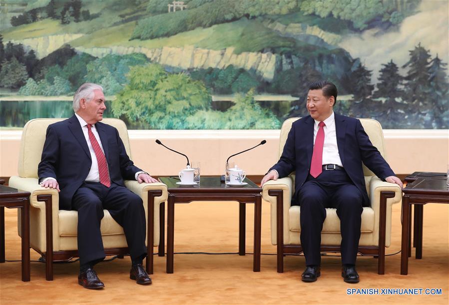 El presidente chino, Xi Jinping, se reunió el domingo con el visitante secretario de Estado estadounidense, Rex Tillerson. (Xinhua/Ju Peng)