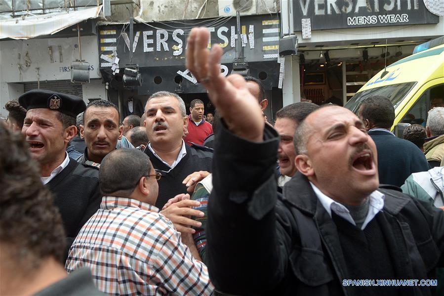ALEJANDRIA, abril 9, 2017 (Xinhua) -- Personas reaccionan en el sitio de una explosión en Alejandría, Egipto, el 9 de abril de 2017. Once personas murieron y 35 resultaron heridas en un ataque con bomba ocurrido cerca de una iglesia copta en la gobernación egipcia de Alejandría, informó el domingo el Ministerio de Salud de Egipto. (Xinhua/Str)