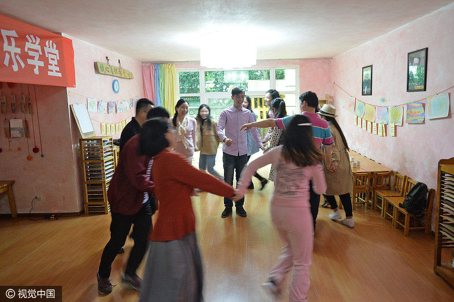Sun Jialong, fundador del Jardín de la Infancia para Adultos de Chengdu, provincia de Sichuan, afirma que el objetivo es ayudar a las personas a liberarse de las presiones cotidianas y el rigor de la competencia social a través del canto, el baile, la pintura y los juegos de entretenimiento. [Foto: VCG]