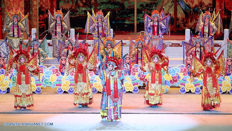 EIJING, mayo 14, 2017 (Xinhua) -- Artistas participan durante la "Ruta Milenaria", una puesta en escena para el Foro de la Franja y la Ruta para la Cooperación Internacional, en el Centro Nacional para las Artes Escénicas en Beijing, capital de China, el 14 de mayo de 2017. (Xinhua/Wang Ye)