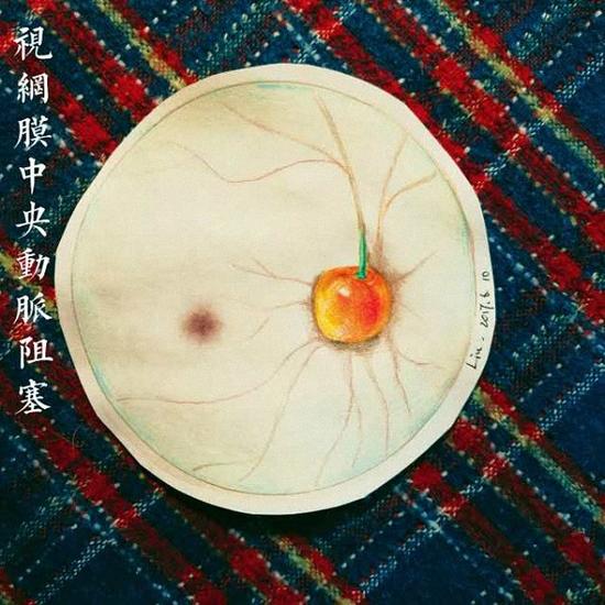 Un cuadro que representa las enfermedades de la retina dibujado por Song Linlin. En reconocimiento a su habilidad creativa se ganó el título de "artista médico en la Universidad de Fudan." La graduación para los estudiantes en China es un momento muy especial, y parte de la diversión está en encontrar una manera especial o llamativa de celebrar los logros. [Foto proporcionada por Song Linlin]