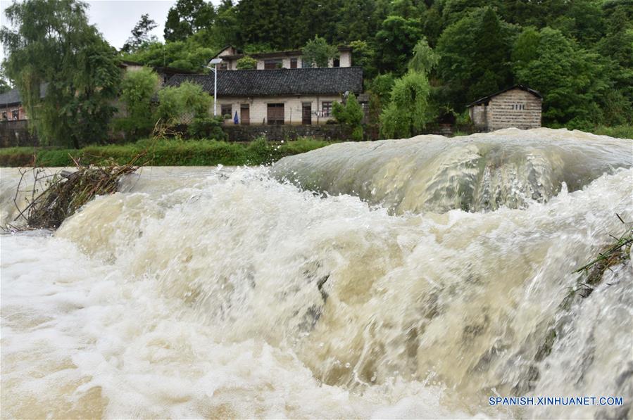 GUIZHOU, junio 25, 2017 (Xinhua) -- Imagen del 24 de junio de 2017, de una zona inundada después de fuertes lluvias en el poblado de Dayan del condado de Songtao, en la provincia de Guizhou, en el suroeste de China. (Xinhua/Long Yuanbin)