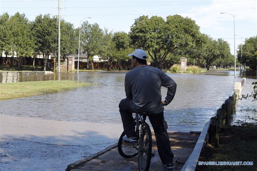 HOUSTON, agosto 30, 2017 (Xinhua) -- Un hombre permanece en un área inundada, en Houston, estado de Texas, Estados Unidos, el 30 de agosto de 2017. A medida que las aguas empiezan a retroceder en Houston, funcionarios se?alaron el miércoles que están surgiendo inquietudes sanitarias tras las fuertes inundaciones provocadas por el huracán Harvey. Los funcionarios recordaron a los residentes que deben mantenerse alejados de las aguas de la inundación pues podrían contener escombros peligrosos, cables eléctricos caídos y serpientes. También les recordaron que deben estar atentos y eliminar el agua estancada con el fin de reducir la amenaza de las enfermedades transmitidas por mosquitos. (Xinhua/Song Qiong)