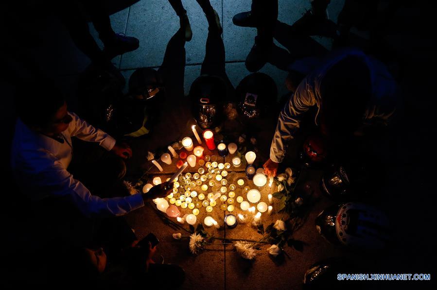 Personas participan en el evento "Noche de Velas", un homenaje a las víctimas de los terremotos del 7 y 19 de septiembre, en el Monumento a la Revolución, en la Ciudad de México, capital de México, el 15 de octubre de 2017. (Xinhua/Francisco Ca?edo)
