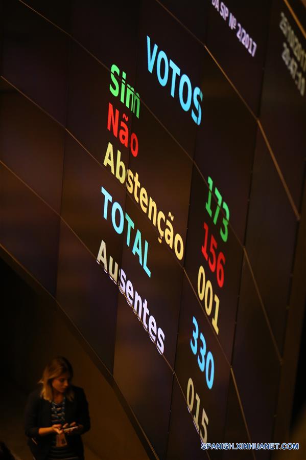 BRASILIA, octubre 25, 2017 (Xinhua) -- Vista de un panel electrónico que muestra la votación durante una sesión en el pleno de la Cámara de Diputados, en Brasilia, Brasil, el 25 de octubre de 2017. El pleno de la Cámara de Diputados de Brasil comenzó el miércoles una votación para definir la continuidad o el rechazo de la denuncia por tentativa de obstrucción de justicia y asociación ilícita contra el presidente Michel Temer, presentada por la fiscalía. (Xinhua/Wilton Junior/AGENCIA ESTADO)