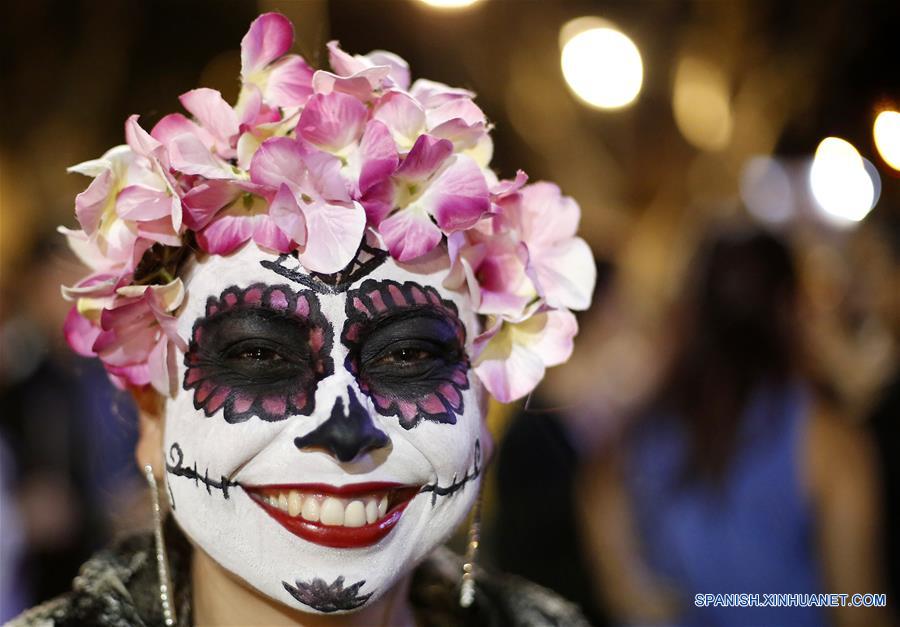 Una persona disfrazada posa durante la "Caminata Zombie" en San José, capital de Costa Rica, el 28 de octubre de 2017. De acuerdo con información de la prensa local, residentes portaron diversos disfraces para participar en la caminata zombie, evento organizado para celebrar Halloween. (Xinhua/Kent Gilbert)