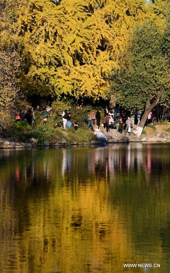 La gente disfruta de la estampa oto?al en la Universidad de Pekín, capital de China, el 29 de octubre de 2017. (Xinhua / Chen Yehua)