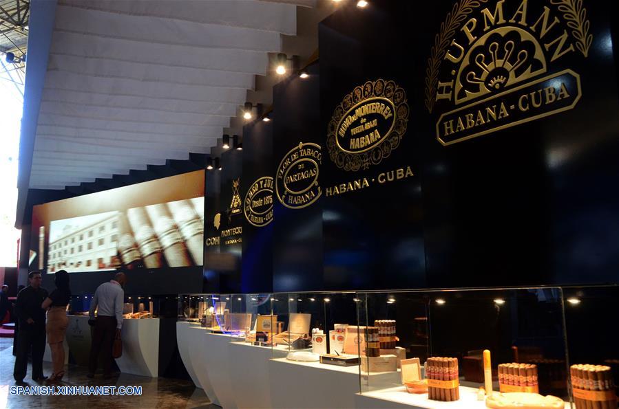 Imagen del 30 de octubre de 2017, de un pabellón de Cuba donde se exhiben puros durante la 35 Feria Internacional de la Habana (FIHAV) 2017, en el recinto ferial Expocuba, en La Habana, Cuba. (Xinhua/Joaquín Hernández)