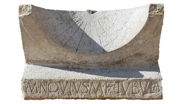 El reloj de sol fue encontrado mientras se excavaba una zona frente a la entrada de un antiguo teatro, en una calle secundaria de la colonia romana.