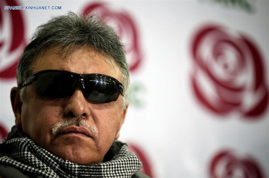 Seusis Pausias Hernández, alias "Jesús Santrich", participa durante una conferencia de prensa sobre el fallo de la Corte Constitucional de Colombia a la Jurisdicción Especial para la Paz (JEP), en Bogotá, capital de Colombia, el 16 de noviembre de 2017. (Xinhua/Luisa González/COLPRENSA)