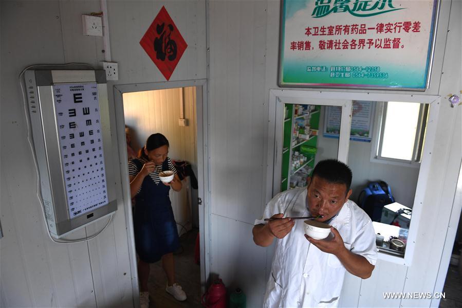 El doctor Yu Jiajun y su esposa Wu Qijiao almuerzan en la Clínica Haidao, fondeada en el embalse Jinzhai de la Reserva Xianghongdian, provincia de Anhui. 14 de septiembre del 2017. (Foto: Xinhua)