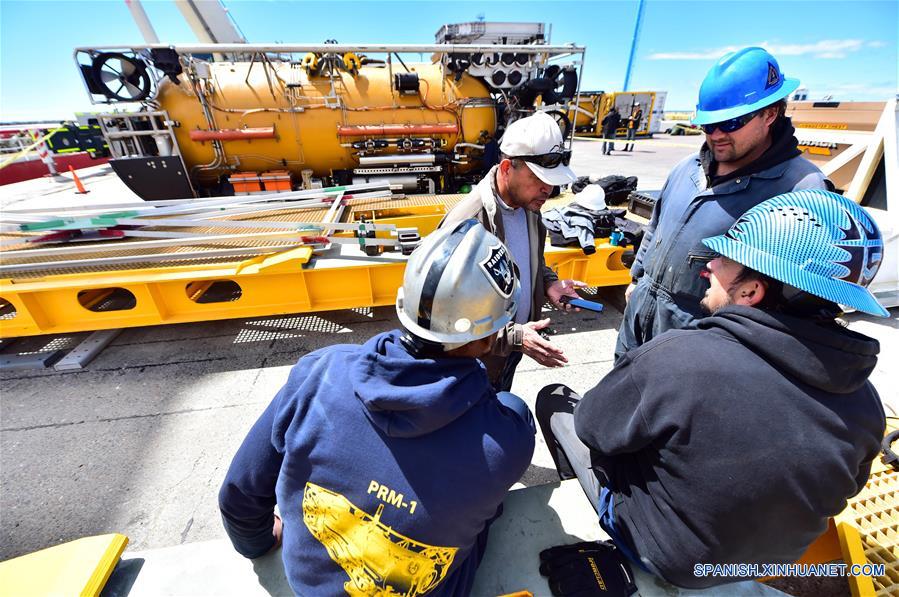 CHUBUT, noviembre 22, 2017 (Xinhua) -- Empleados realizan preparativos por parte de la Armada de Estados Unidos para colaborar con la búsqueda del submarino ARA San Juan, en el muelle marítimo de Comodoro Rivadavia, provincia de Chubut, Argentina, el 22 de noviembre de 2017. El portavoz de la Armada de la República Argentina (ARA) en Buenos Aires, Enrique Balbi, confirmó la ma?ana del miércoles que "no hay rastros" del submarino desaparecido el 15 de noviembre en el Atlántico sur con 44 tripulantes a bordo. El funcionario militar brindó un nuevo parte oficial en la sede de la ARA, en el barrio de Retiro en la zona norte de la capital argentina, donde descartó versiones que indicaban haber detectado "imágenes térmicas" en la zona de búsqueda. En tanto que, amigos y familiares de los 44 tripulantes del submarino argentino ARA San Juan, realizaron una misa en la Base Naval de la ciudad de Mar del Plata, para pedir por el regreso a casa de los marinos. La ceremonia religiosa, que tuvo lugar en la capilla "Stella Maris" de la Base Naval, fue organizada por amigos, familiares y compa?eros de la escuela del capitán de corbeta, Jorge Bergallo, uno de los 44 tripulantes del navío. (Xinhua/Maxi Jonas/TELAM)