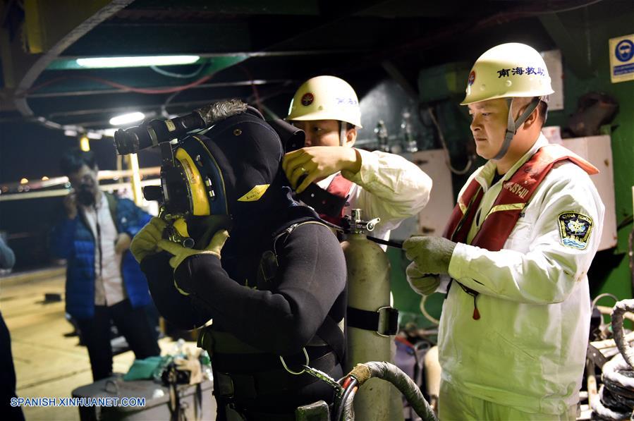 Rescatistas trabajan en el sitio del hundimiento de un buque de carga frente la costa de la provincia de Guangdong, en el sur de China, el 28 de noviembre de 2017. (Xinhua/Lu Hanxin)