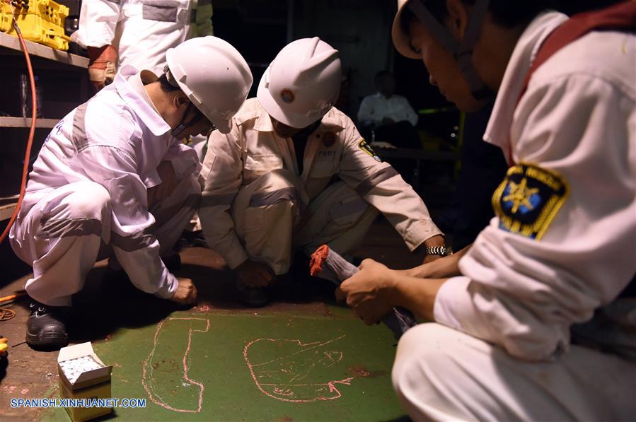 Rescatistas trabajan en el sitio del hundimiento de un buque de carga frente la costa de la provincia de Guangdong, en el sur de China, el 28 de noviembre de 2017. (Xinhua/Lu Hanxin)