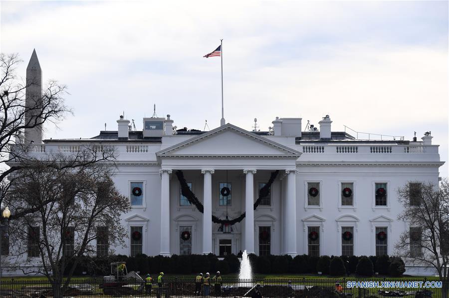 Vista de la fachada de la Casa Blanca, en Washington D.C., capital de Estados Unidos, el 6 de diciembre de 2017. (Xinhua/Yin Bogu)