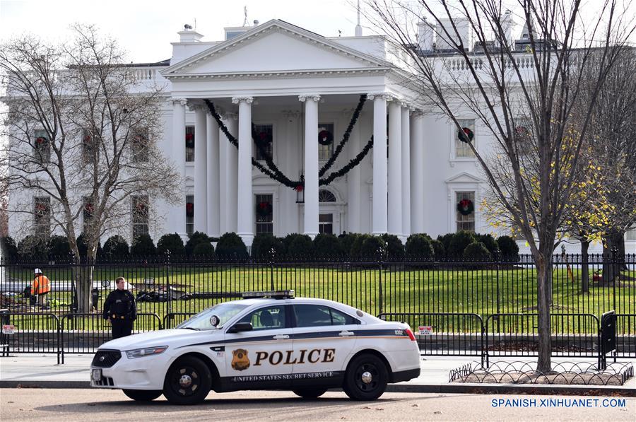 Un oficial de policía monta guardia frente a la Casa Blanca, en Washington D.C., capital de Estados Unidos, el 6 de diciembre de 2017. (Xinhua/Yin Bogu)