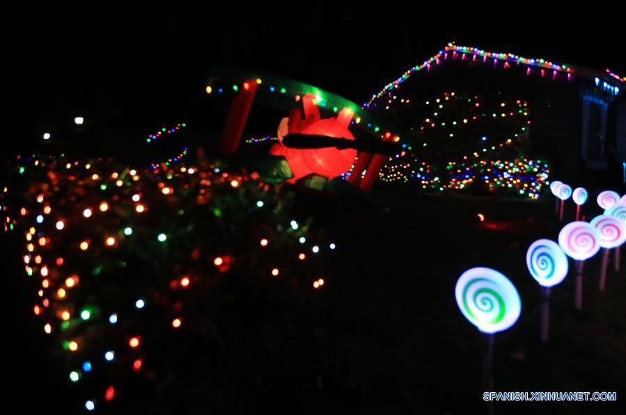Imagen del 24 de diciembre de 2017, de decoraciones y luces navide?as encendidas frente a una casa durante la Navidad, en Los Angeles, Estados Unidos. (Xinhua/Li Ying)