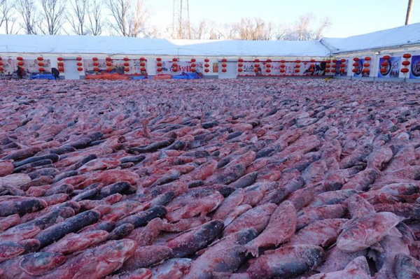 Varios pescadores construyen un muro con 2.000 peces en Jilin (8)