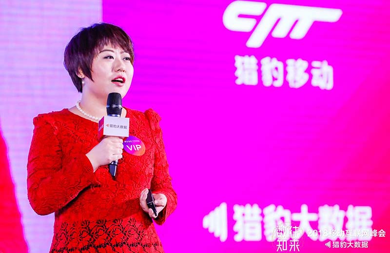 Quan Jing, gerente de mercadeo de Cheetah Mobile y decana del Cheetah Global Lab, instituto de investigación sobre tecnologías móviles, ofrece un discurso en la Cumbre de Internet Móvil y Aplicaciones, celebrada en Beijing, el 20 de enero del 2018. [Foto: proporcionada]