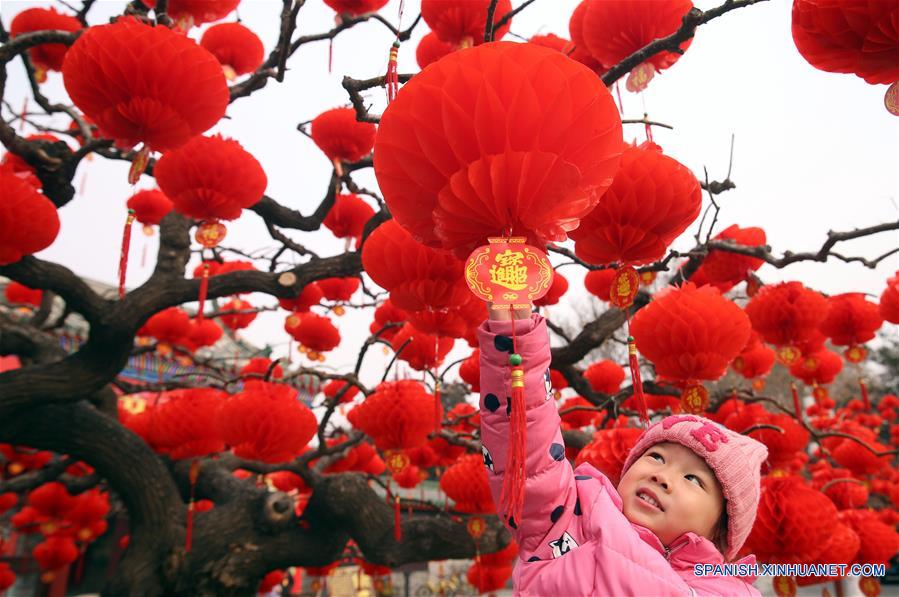 Una ni?a toma una linterna en la puerta sur del Parque Ditan, también conocido como el Templo del Parque de la Tierra, en Beijing, capital de China, el 27 de enero de 2018. El Templo del Parque de la Tierra fue decorado con linternas rojas para celebrar el próximo Festival de Primavera o A?o Nuevo Lunar chino. (Xinhua/Chen Xiaogen)