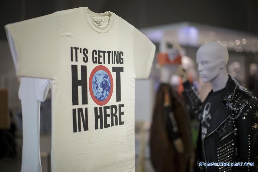 Una trabajadora permanece frente a un vestido de noche en la exhibición "Fashioned from Nature", en el Museo de Victoria y Alberto, en Londres, Reino Unido, el 18 de abril de 2018. De acuerdo con información de la prensa local, la exhibición será abierta al público el 21 de abril, y explora la relación entre la moda y la naturaleza. (Xinhua/Tim Ireland)