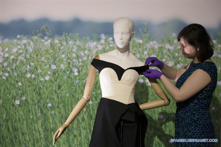 LONDRES, abril 18, 2018 (Xinhua) -- Una trabajadora acomoda un vestido en la exhibición "Fashioned from Nature", en el Museo de Victoria y Alberto, en Londres, Reino Unido, el 18 de abril de 2018. De acuerdo con información de la prensa local, la exhibición será abierta al público el 21 de abril, y explora la relación entre la moda y la naturaleza. (Xinhua/Tim Ireland)