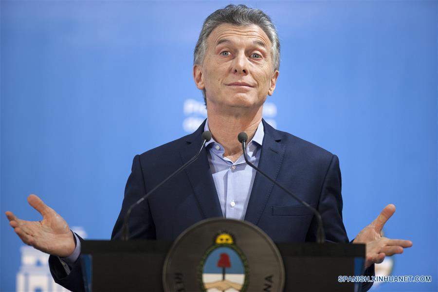 El presidente de Argentina, Mauricio Macri, pronuncia un discurso durante una conferencia de prensa en la Residencia Oficial de Olivos, a 15km de Buenos Aires, Argentina, el 16 de mayo de 2018.(Xinhua/Martín Zabala)