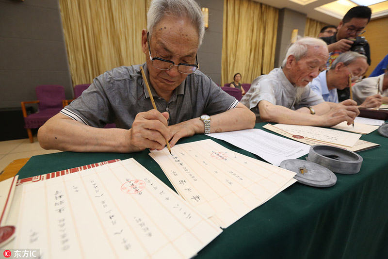 Los profesores escriben a mano cartas de admisión en la Universidad Normal de Shaanxi en Xi'an, provincia de Shaanxi, el 16 de julio de 2018. [Foto / IC]