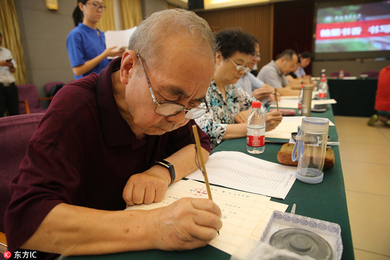 Los profesores escriben a mano cartas de admisión en la Universidad Normal de Shaanxi en Xi'an, provincia de Shaanxi, el 16 de julio de 2018. [Foto / IC]