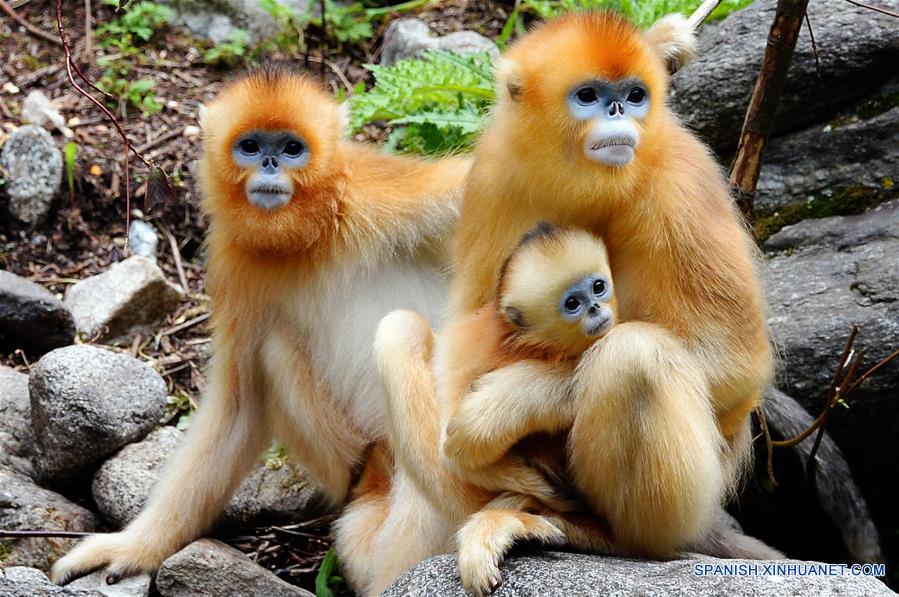 Imagen del 3 de agosto de 2018 de monos dorados descansando en el valle del panda gigante de la Monta?a Qinling en el condado de Foping, provincia de Shaanxi, en el noroeste de China. Los monos dorados de Qinling están bajo protección de primer nivel de China. Su número se ha elevado de 3,000 en 1998 a 5,000 en el presente gracias a la mejora del medio ambiente y el trabajo de protección. (Xinhua/Liu Xiao)