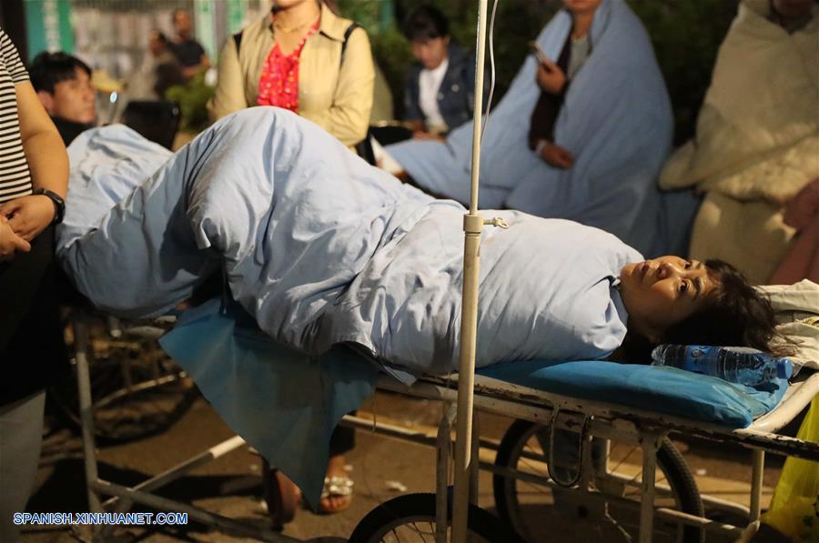 YUNNAN, agosto 13, 2018 (Xinhua) -- Una persona herida es transferida a un área de seguridad en el condado de Tonghai, provincia de Yunnan, en el suroeste de China, el 13 de agosto de 2018. Dieciocho personas resultaron heridas en un sismo de magnitud 5 que sacudió la ma?ana del lunes la provincia de Yunnan, en el suroeste de China, informaron las autoridades locales. El sismo afectó a más de 48,000 residentes en los distritos de Tonghai, Huaning y Jiangchuan, todos administrados por la ciudad de Yuxi. Más de 6,000 hogares resultaron da?ados, dice un comunicado del departamento provincial de asuntos civiles. (Xinhua/Wang Anhaowei)