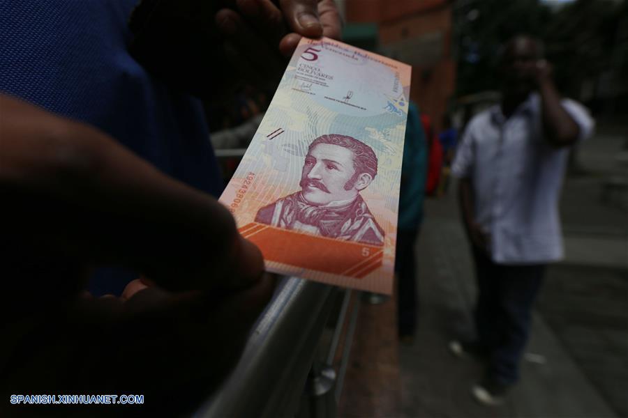 CARACAS, agosto 20, 2018 (Xinhua) -- Una persona muestra un billete del nuevo bolívar soberano, en Caracas, Venezuela, el 20 de agosto de 2018. El nuevo cono monetario entró el lunes en vigencia en Venezuela, denominado bolívar soberano, el cual supone una eliminación de cinco ceros respecto al anterior, el bolívar fuerte. El presidente venezolano, Nicolás Maduro, decretó el lunes día no laborable para ajustar los detalles de la transición y adecuar las plataformas bancarias del país, razón por lo cual buena parte de la banca electrónica se encuentra aún sin funcionar. (Xinhua/Gregorio Terán/AVN)