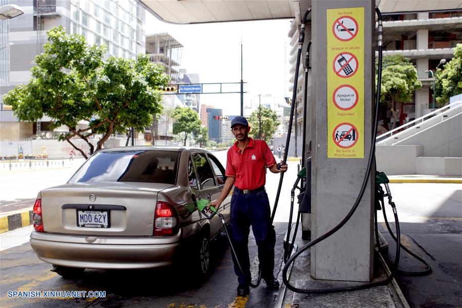 CARACAS, agosto 20, 2018 (Xinhua) -- Un empleado abastece un automóvil con combustible en una estación de servicio, en Caracas, Venezuela, el 20 de agosto de 2018. El nuevo cono monetario entró el lunes en vigencia en Venezuela, denominado bolívar soberano, el cual supone una eliminación de cinco ceros respecto al anterior, el bolívar fuerte. El presidente venezolano, Nicolás Maduro, decretó el lunes día no laborable para ajustar los detalles de la transición y adecuar las plataformas bancarias del país, razón por lo cual buena parte de la banca electrónica se encuentra aún sin funcionar. (Xinhua/Boris Vergara)