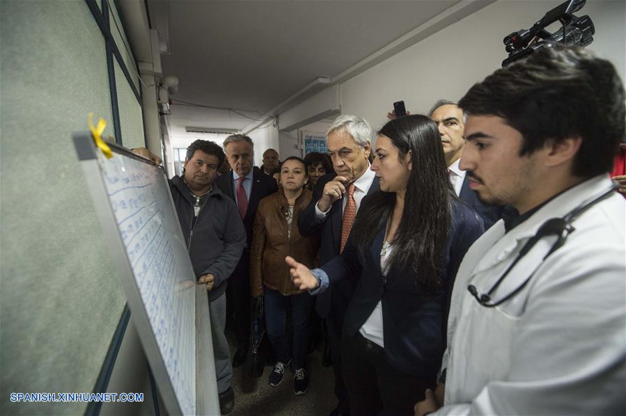 VALPARAISO, agosto 28, 2018 (Xinhua) -- Imagen cedida por la Presidencia de Chile del presidente chileno, Sebastián Pi?era (3-i), realizando un recorrido durante su visita a las localidades costeras de Quintero y Puchuncavi, en la región de Valparaíso, en Chile, el 28 de agosto de 2018. El presidente chileno, Sebastián Pi?era, anunció el martes un plan de descontaminación para las localidades costeras de Quintero y Puchuncaví, en la región de Valparaíso, donde más de 300 personas se han intoxicado con gases industriales. (Xinhua/Sebastián Rodríguez/Presidencia de Chile)