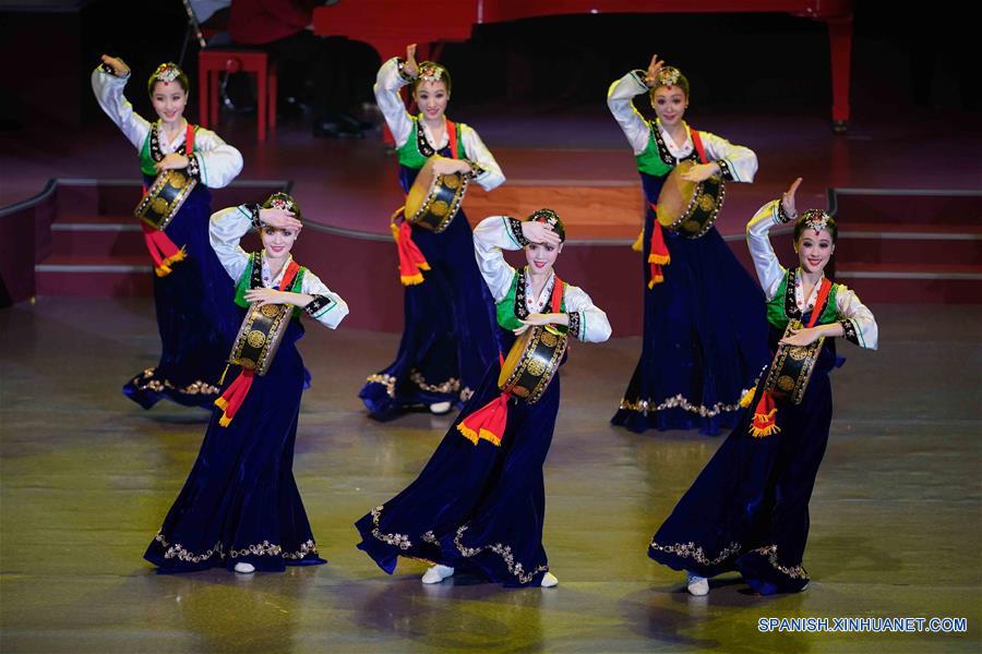 Bailarinas realizan una presentación durante un espectaculo artístico en celebración del 70 aniversario de la fundación de la República Popular Democrática de Corea (RPDC), en Pyongyang, RPDC, el 8 de septiembre de 2018. (Xinhua/Xing Guangli)