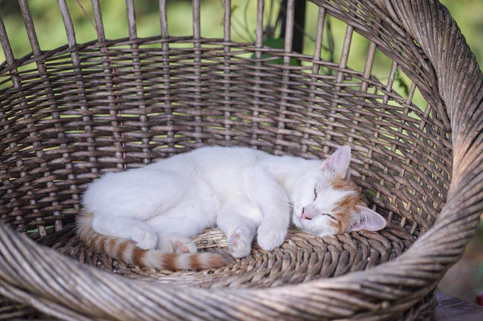 Un gato duerme en una cesta provista por los amantes de los gatos en el área. [Foto de Tang Tao para chinadaily.com.cn]