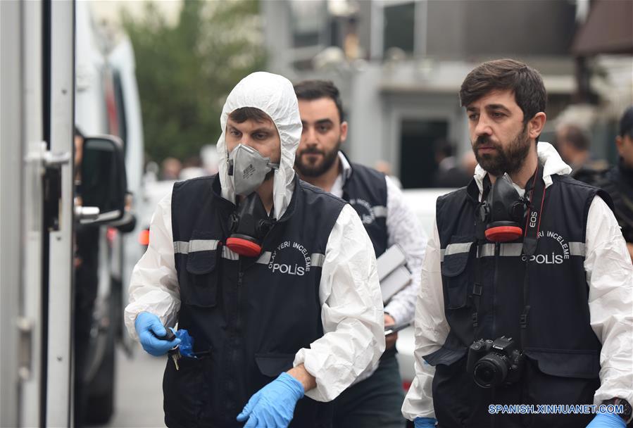 ESTAMBUL, octubre 17, 2018 (Xinhua) -- Policías turcos se preparan para buscar en la residencia del cónsul general de Arabia Saudí, en Estambul, Turquía, el 17 de octubre de 2018. Un equipo turco entró el miércoles en la residencia del cónsul general de Arabia Saudí en Estambul para buscar mayor evidencia sobre la desaparición del periodista saudí Jamal Khashoggi. (Xinhua/He Canling)