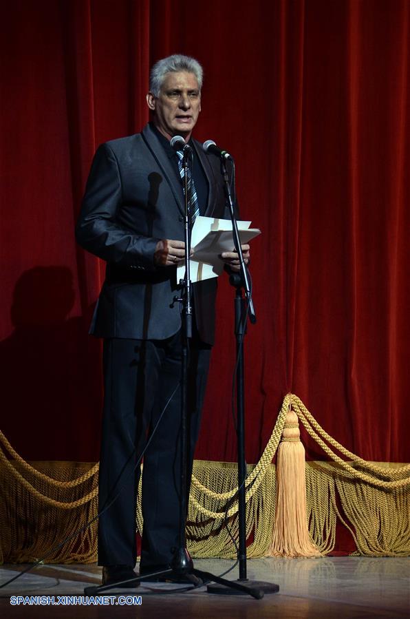 HABANA, octubre 28, 2018 (Xinhua ) -- El presidente de Cuba, Miguel Díaz-Canel, pronuncia un discurso durante la inauguración de la edición número 26 del Festival Internacional de Ballet de La Habana, en el Gran Teatro de La Habana, en La Habana, capital de Cuba, el 28 de octubre de 2018. El presidente Miguel Díaz-Canel reconoció la noche del domingo al Ballet Nacional de Cuba y a sus fundadores, Alicia, Fernando y Alberto Alonso, por su "fecunda e "inmensa" obra y por sus aportes a la cultura de la isla. En las palabras inaugurales de la 26 edición del Festival Internacional de Ballet de La Habana, el jefe de estado elogió el altruismo de los creadores de la primera compa?ía profesional de ballet de la historia de la isla en 1948. (Xinhua/Joaquín Hernández)