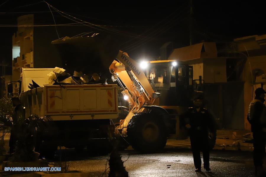 TIKRIT, noviembre 18, 2018 (Xinhua) -- Elementos de las fuerzas de seguridad vigilan en el sitio de una explosión en Tikrit, capital de la provincia de Saladino, en el centro de Irak, el 18 de noviembre de 2018. Al menos 5 personas murieron y 13 más resultaron heridas el domingo por el estallido de un coche bomba en Tikrit, capital de la provincia de Saladino, centro de Irak, dijo un oficial provincial de seguridad. (Xinhua/Str)