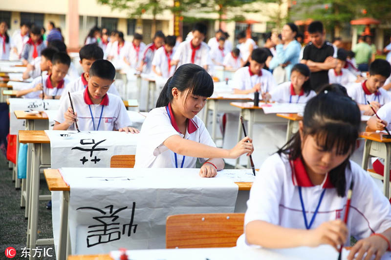 Un concurso de caligrafía reúne a a cientos de estudiantes en Hainan (2)