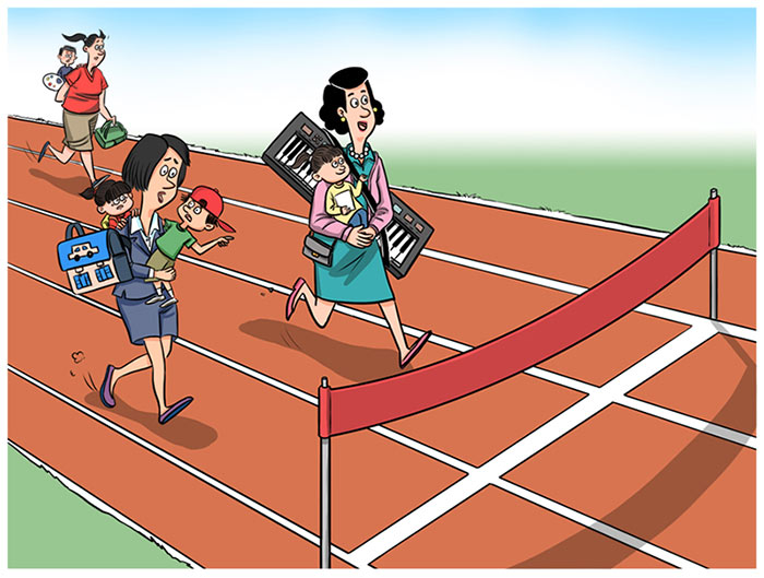 “Mompetition” (competencia entre madres). [Foto: Shi Yu/ China Daily]