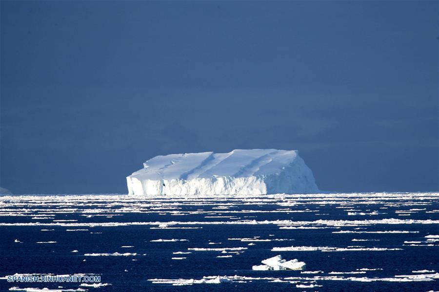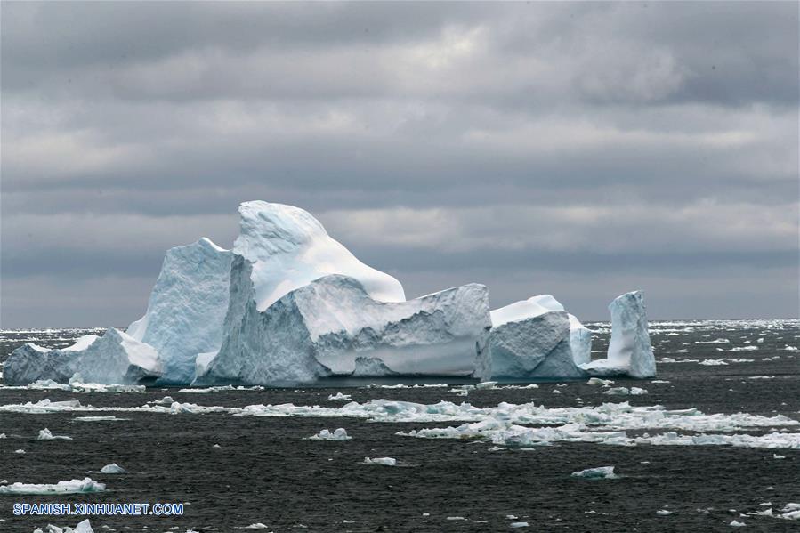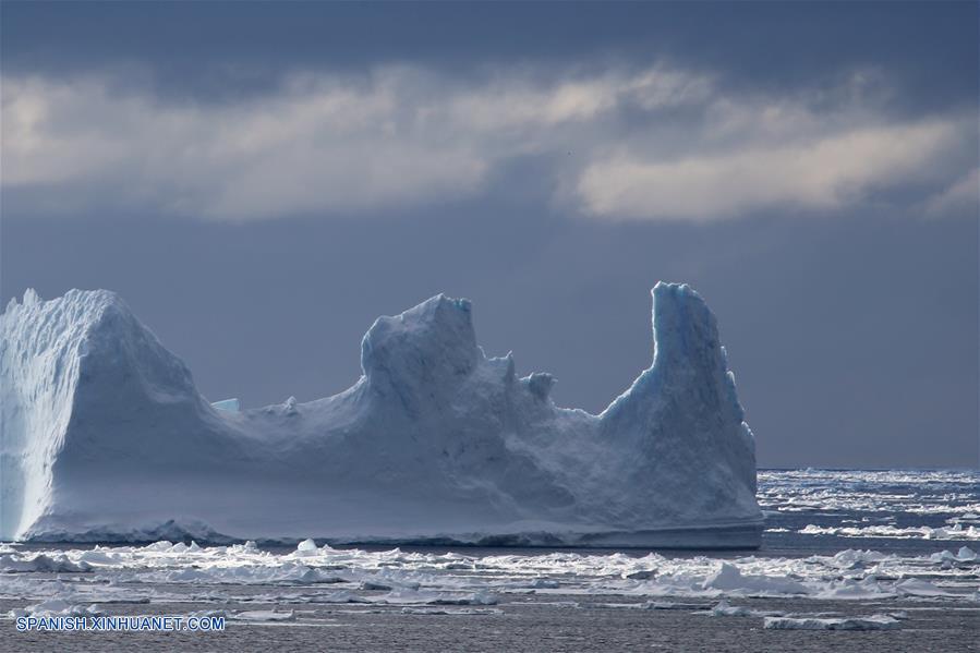 A BORDO DEL XUELONG, noviembre 28, 2018 (Xinhua) -- Imagen del 27 de noviembre de 2018 de una vista de un iceberg captado desde el rompehielos de investigación Xuelong de China, en una zona de hielo flotante en el Océano Antártico. El rompehielos de investigación Xuelong de China, entró a una zona de hielo flotante en el Océano Antártico para evitar un ciclón. Esta programado que el rompehielos llegué a la Estación Zhongshan en la Antártida el 30 de noviembre. También conocido como Dragón de Nieve, el rompehielos que lleva un equipo de investigación zarpó de Shanghai el 2 de noviembre, comenzando la 35 expedición antártica del país que durará 162 días y cubre 37,000 millas náuticas (68,500 kilómetros). (Xinhua/Liu Shiping)