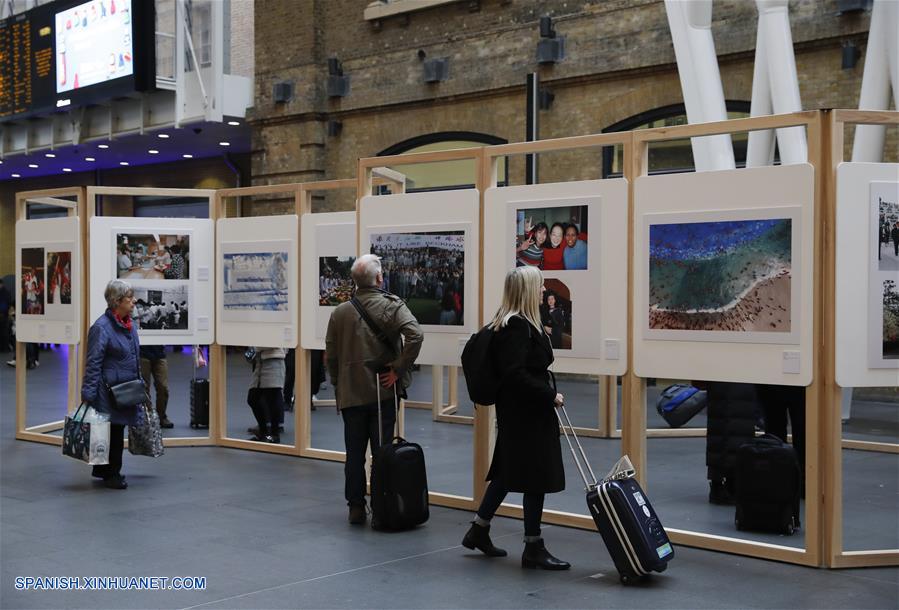 LONDRES, diciembre 10, 2018 (Xinhua) -- Pasajeros observan una exposición fotográfica en la Estación Kings Cross en Londres, Reino Unido, el 10 de diciembre de 2018. Una exposición fotográfica para celebrar el 40 aniversario de la reforma y apertura de China fue inaugurada el lunes en la Estación Kings Cross en Londres. La exposición Reforma y Sue?os, organizada por la Corporación Internacional de Comunicación en Imagen y Cultura de China, presenta 80 espectaculares fotografías tomadas a lo largo de los últimos 40 a?os por fotógrafos de la Agencia de Noticias Xinhua. (Xinhua/Han Yan)