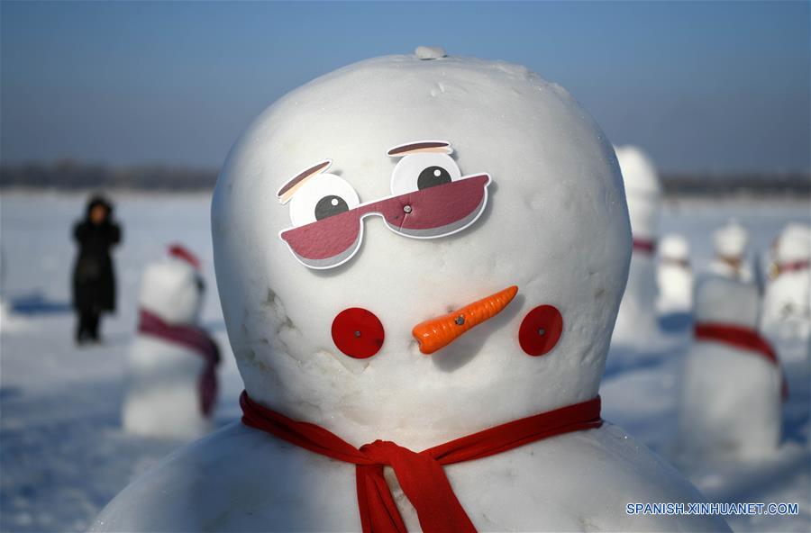 HEILONGJIANG, enero 2, 2019 (Xinhua) -- Un mu?eco de nieve es exhibido en la orilla del río Songhua, en Harbin, capital de la provincia de Heilongjiang, en el noreste de China, el 2 de enero de 2019. En total 2,019 mu?ecos de nieve fueron exhibidos en el lugar para recibir el a?o 2019. (Xinhua/Wang Jianwei)