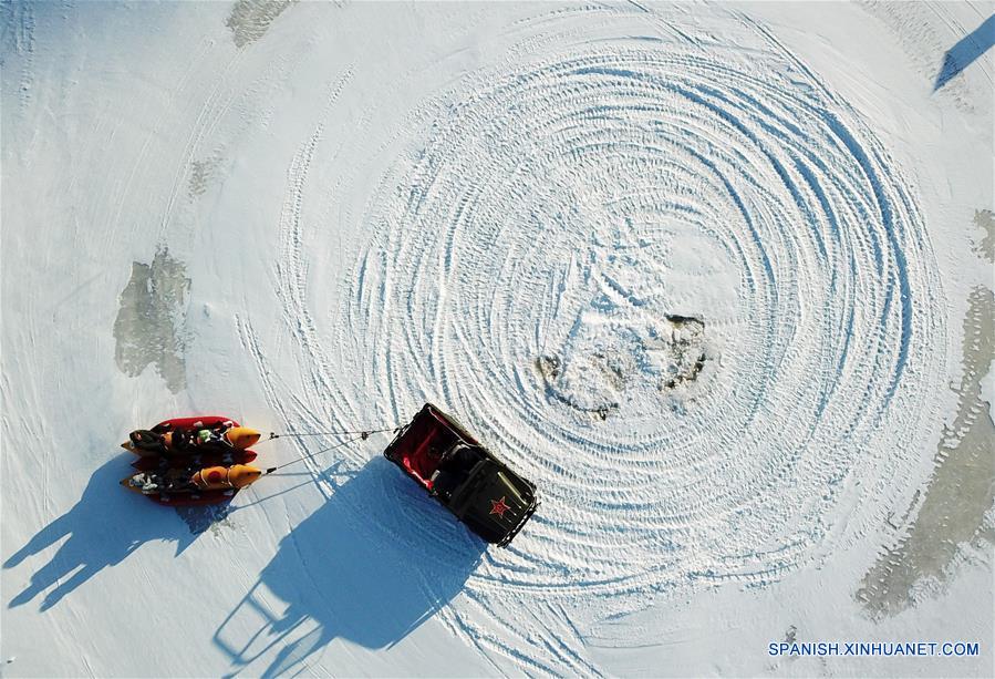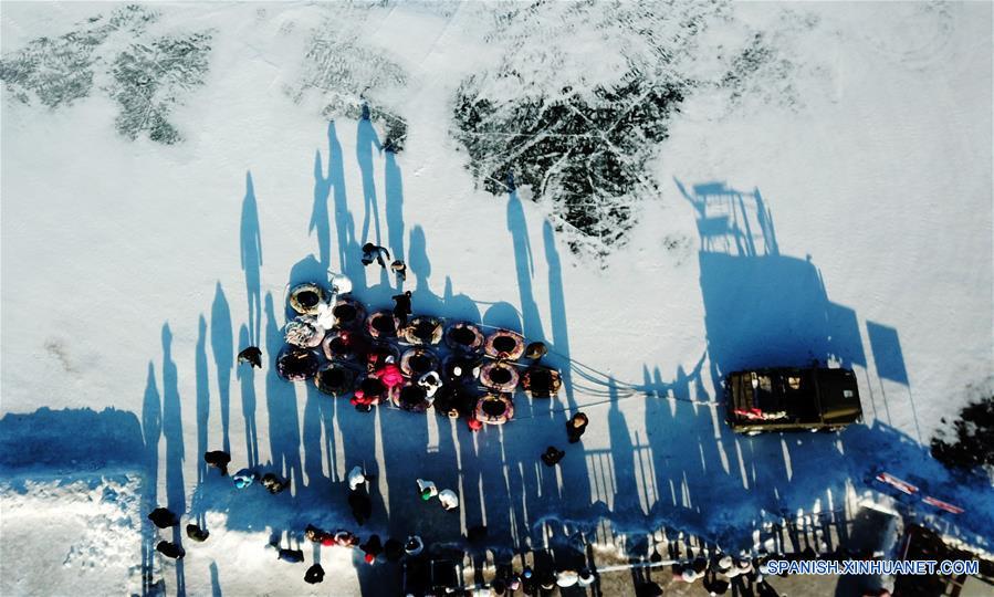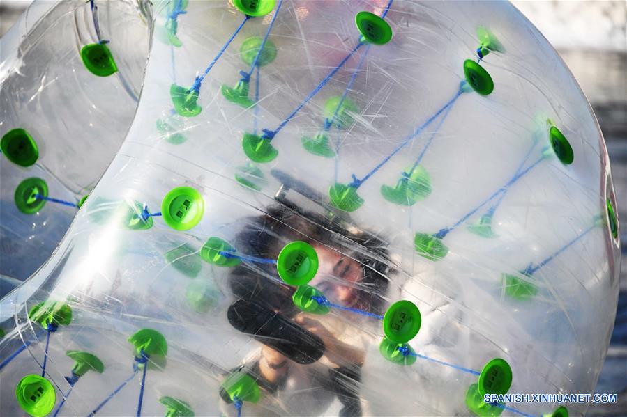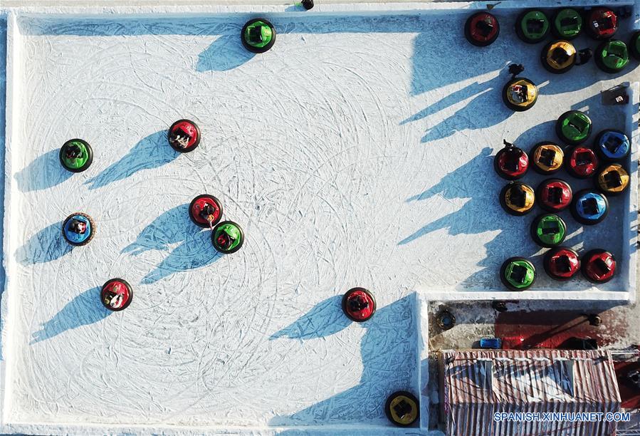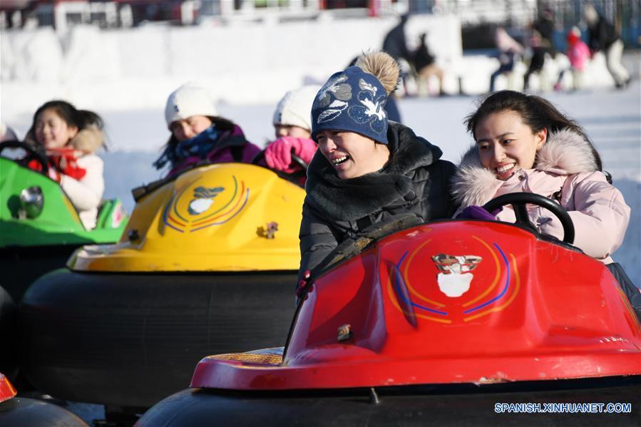 HEILONGJIANG, enero 20, 2019 (Xinhua) -- Turistas juegan en el congelado Río Songhua en Harbin, capital de la provincia de Heilongjiang, en el noreste de China, el 20 de enero de 2019. (Xinhua/Wang Jianwei)