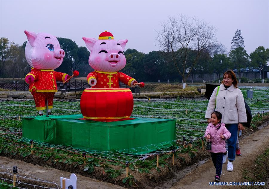 ZHEJIANG, enero 28, 2019 (Xinhua) -- Turistas observan linternas temáticas de cerdos, en Wuzhen, en la provincia de Zhejiang, en el este de China, el 28 de enero de 2019. Un festival de linternas local, que presentó más de 330 linternas, se llevó a cabo previo al próximo Festival de Primavera o A?o Nuevo Lunar chino, que se celebra el 5 de febrero este a?o. (Xinhua/Xu Yu)