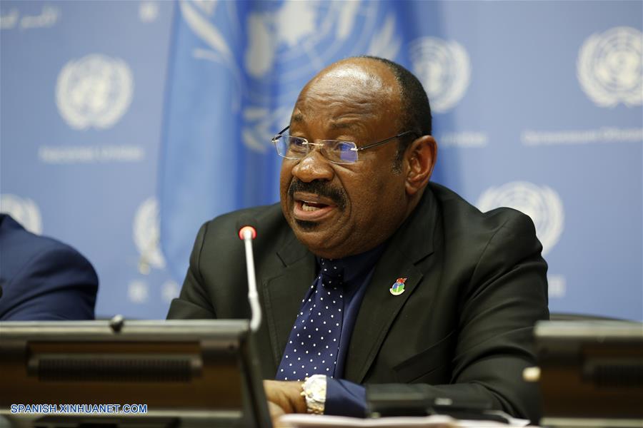 NUEVA YORK, febrero 1, 2019 (Xinhua) -- Anatolio Ndong Mba, embajador de Guinea Ecuatorial ante la Organización de las Naciones Unidas (ONU), y presidente del Consejo de Seguridad para el mes de febrero, participa durante una conferencia de prensa sobre el programa de labores del Consejo de Seguridad para febrero, en la sede de la ONU, en Nueva York, Estados Unidos, el 1 de febrero de 2019. El Consejo de Seguridad de Naciones Unidas (CSNU) realizará en febrero un debate abierto sobre la iniciativa de la Unión Africana llamada "Silenciar las armas en Africa", dijo el viernes Anatolio Ndong Mba. (Xinhua/Li Muxi)