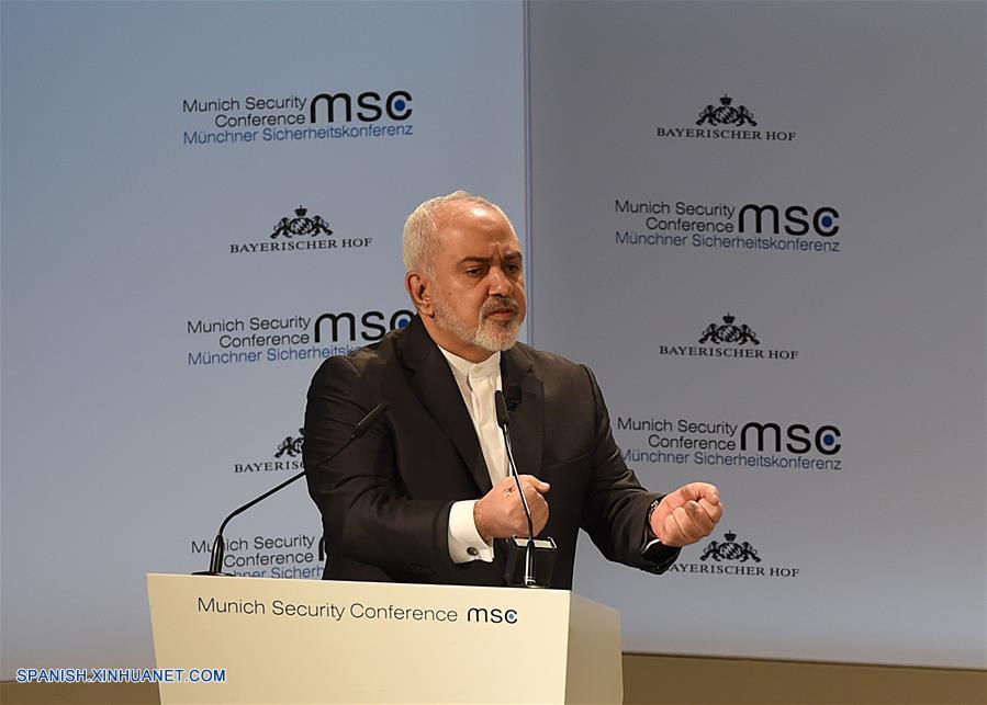 MUNICH, febrero 17, 2019 (Xinhua) -- El ministro de Asuntos Exteriores iraní, Mohammad Javad Zarif, pronuncia un discurso durante la 55 Conferencia de Seguridad de Múnich (CSM), en Múnich, Alemania, el 17 de febrero de 2019. Mohammad Javad Zarif instó el domingo a las potencias europeas a hacer más para salvar el acuerdo nuclear con la república islámica y acusó a Washington de tener "una obsesión" con Irán. (Xinhua/Lu Yang)