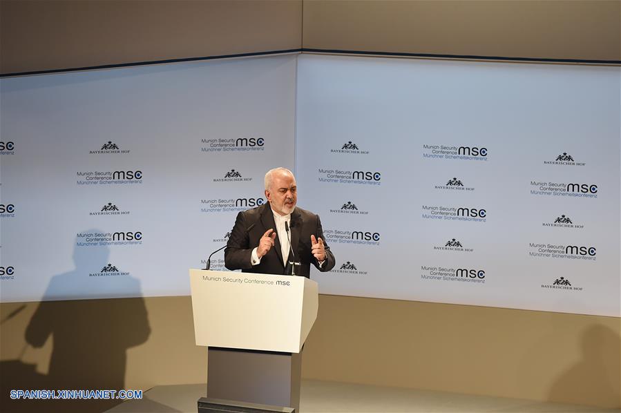 MUNICH, febrero 17, 2019 (Xinhua) -- El ministro de Asuntos Exteriores iraní, Mohammad Javad Zarif, pronuncia un discurso durante la 55 Conferencia de Seguridad de Múnich (CSM), en Múnich, Alemania, el 17 de febrero de 2019. Mohammad Javad Zarif instó el domingo a las potencias europeas a hacer más para salvar el acuerdo nuclear con la república islámica y acusó a Washington de tener "una obsesión" con Irán. (Xinhua/Lu Yang)